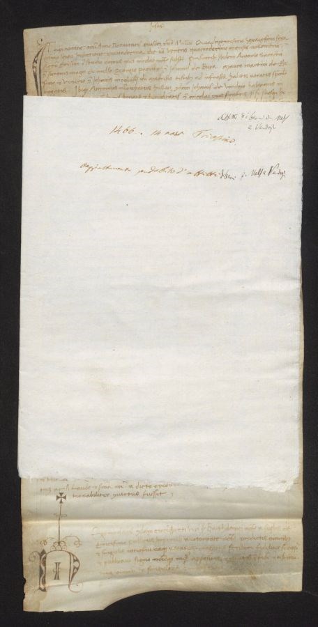 Rigatura in mina di piombo del margine dello specchio di scrittura superiore e laterale; doppia sul margine sinistro