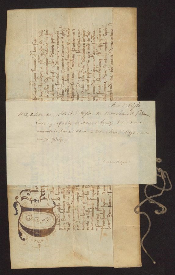 Fra Pietro vescovo di Pedara vicario in pontificalibus nelle Diocesi d'Aquileia dichiara di aver consacrato la Chiesa e l'Altare in detta Chiesa d'Alesso e aver concesse indulgenze