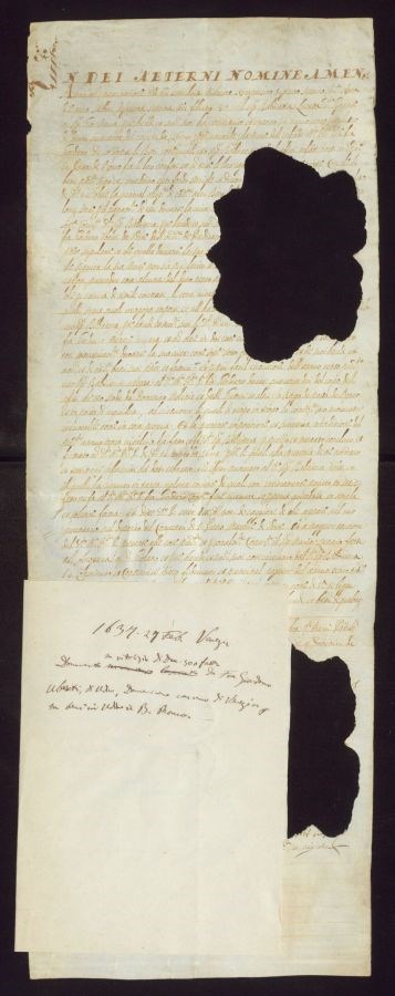 Documento su vitalizio di ducati 300 fatto da fra Giordano Uberti, di Udine, domenicano con uno di Venezia su beni in Udine in Borgo Ronco