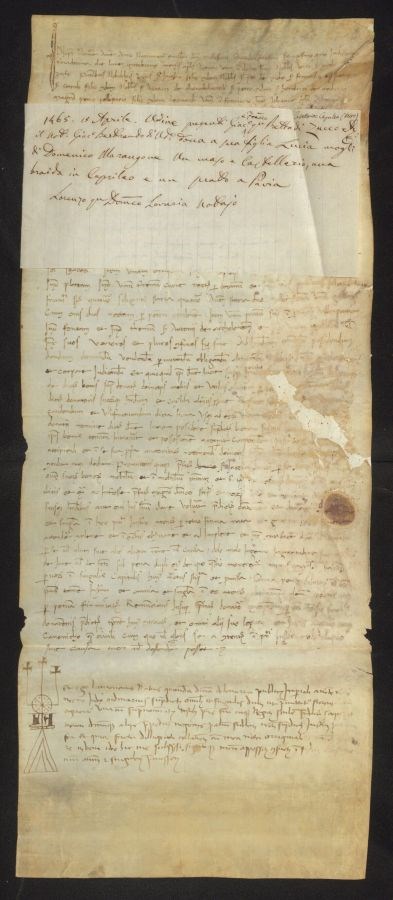 Presenti Giacomo e Francesco quondam Betto di Zucco ed il nobile Giacomo Bertrando di Udine dona a sua figlia Lucia moglie di Domenico Marangone un maso a Castellerio e un prato a Pavia