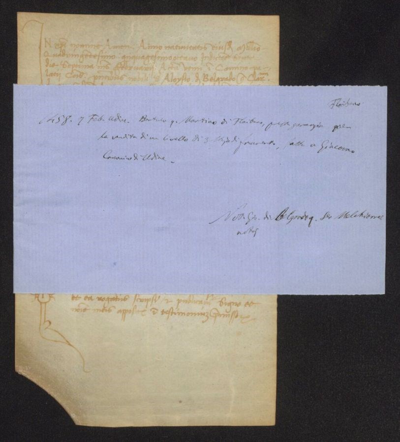 Bortolo quondam Martino di Flaibano, presta garanzia per la vendita di un livello di 3 staia di frumento, fatto a Giacomo Canonico di Udine