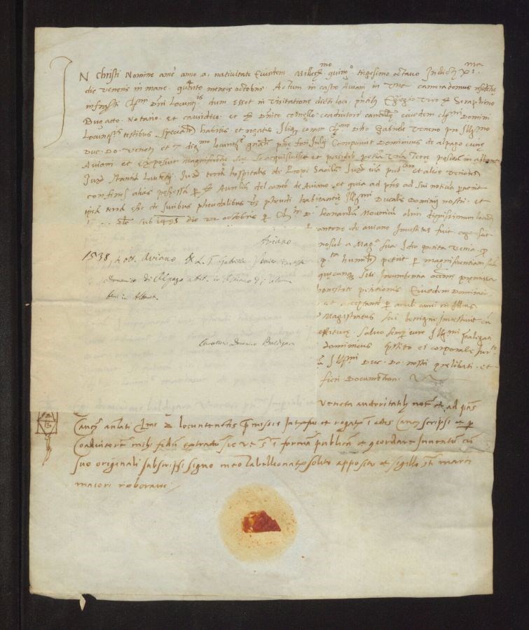 Il Luogotenente Gabriele Venier investe Domenico di Alpago abitante in Aviano di alcuni beni in Albaneto