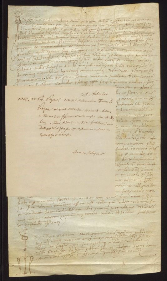 Cadiusso di ser Bernardino Tonino di Venzone il quale istituisce suoi eredi Antonio e Floriano suoi figli avuti dalla moglie sua Maddalena. Tutori Andrea Tonino di lui fratello e [...] Radiusso di lui zio e suo [...] Domenico o Donn[...] della Volpe di Valvasone