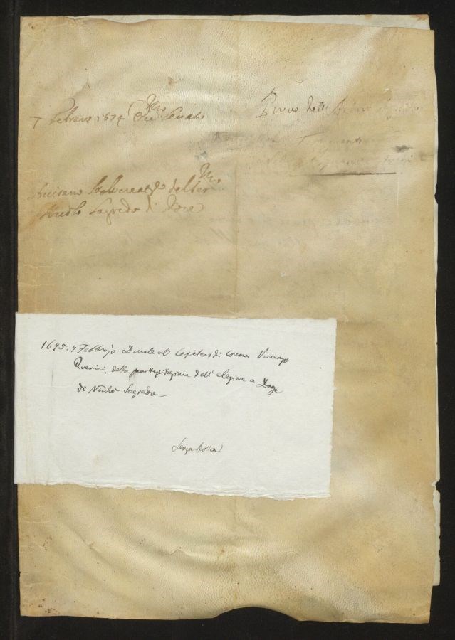 Nel regesto non è riportata la data topica nè il nome di alcun notaio Nel cartiglio in basso è presente un'annotazione: Senza bolla