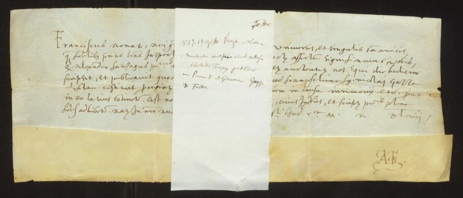 Lettera ducale che certifica che il notajo Alessandro Fanzago pubblicò una procura di Dominus Giovanichio Gazza di Feltre