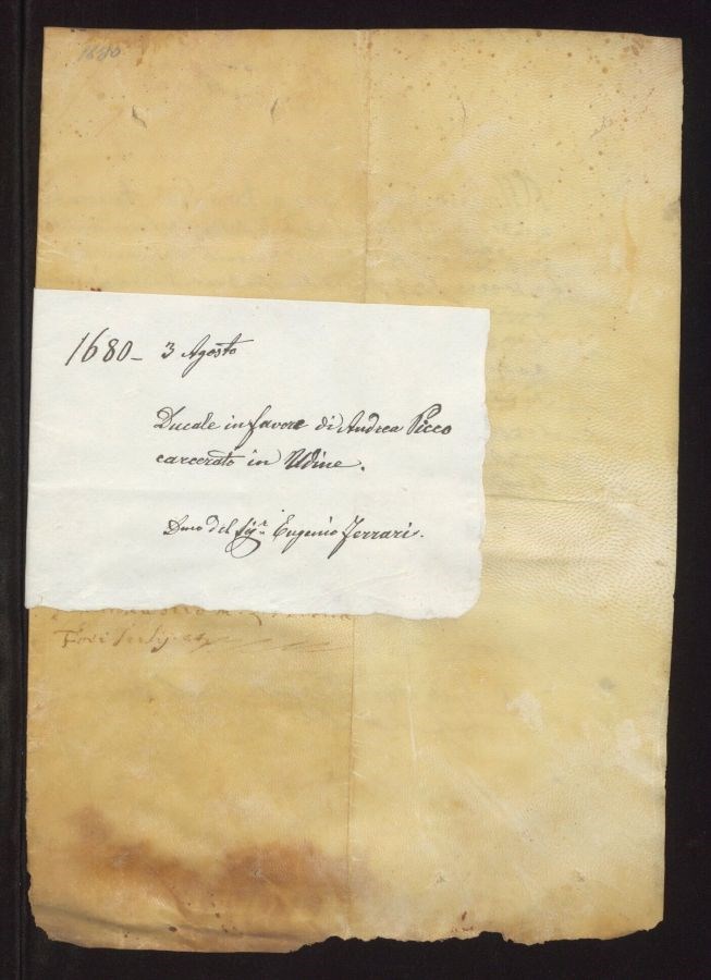 Nel regesto non è riportata la data topica Nel regesto non viene riportato il nome di alcun notaio Sul cartiglio in basso è presente un'annotazione: Dono del Signor Eugenio Ferrari