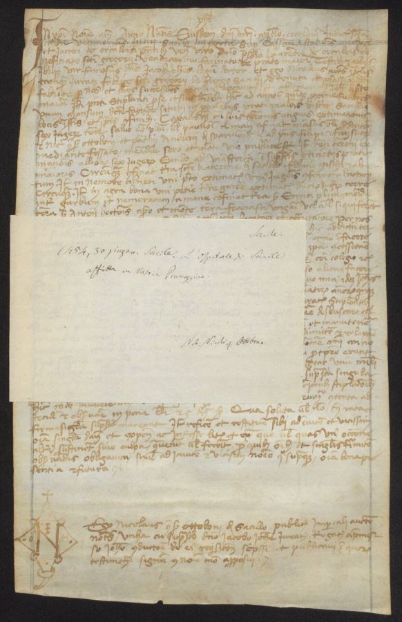 Rigatura in mina di graffite postuma del margine dello specchio di scrittura superiore e laterale