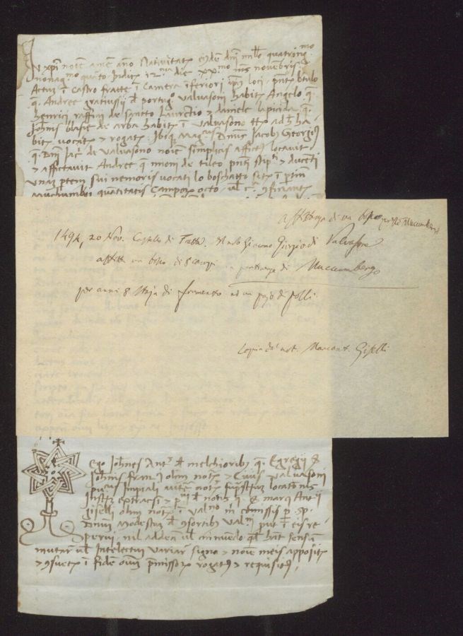 Il nobile Giacomo Giorgio di Valvasone affitta un bosco di 8 campi in pertinenze di bergo per anni 8 staia di frumento ed un paio di polli