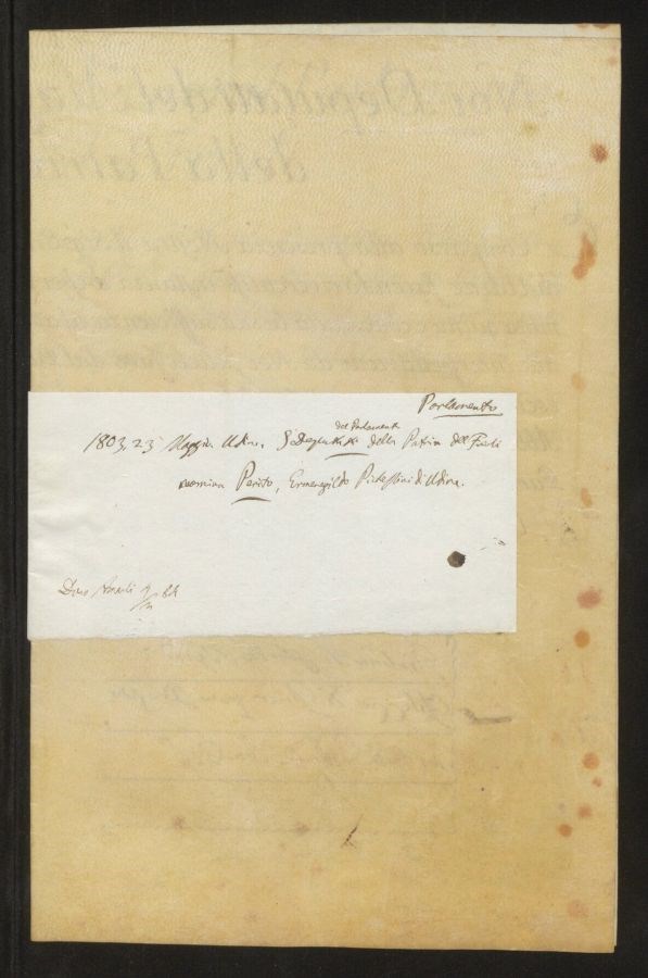 Nel regesto non è riportato il nome di alcun notaio Sul cartiglio in basso è presente un'annotazione: Dono Amarli 7/2 84