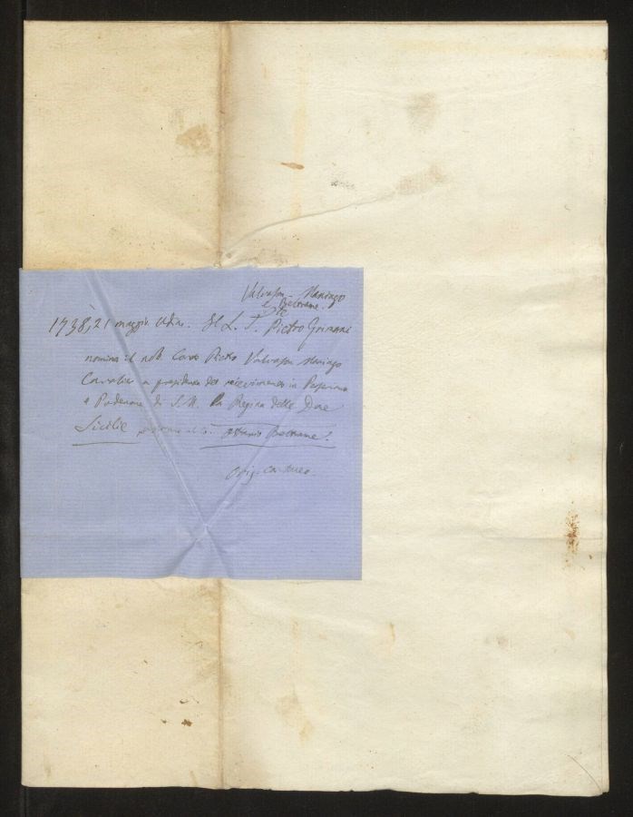 Il Luogotenente Pietro Grimani nomina il nobile Conte Pietro Valvasone Maniago Cavaliere a presidente del ricevimento in Perseriano e Pordenone di Sua Maestà la Regina delle Due Sicilie assieme al Conte Ottavio Beltrame