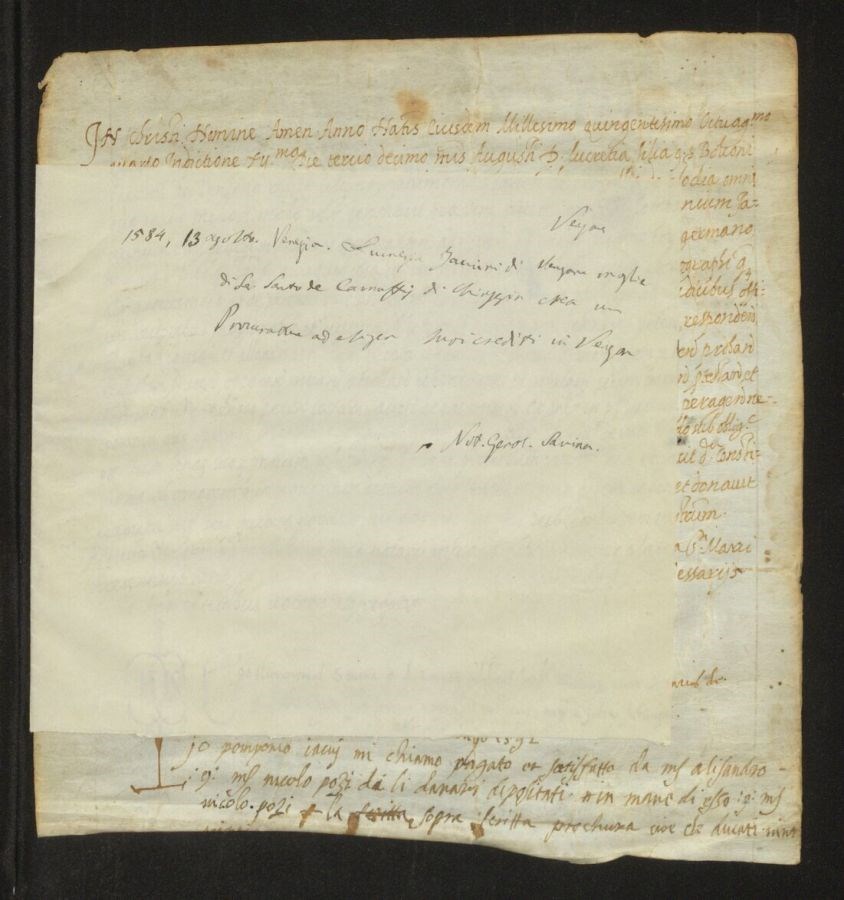 Lucrezia Iacuini di Venzone moglie di ser Sante de Camuffis di Chioggia crea un procuratore a esiger suoi crediti in Venezia