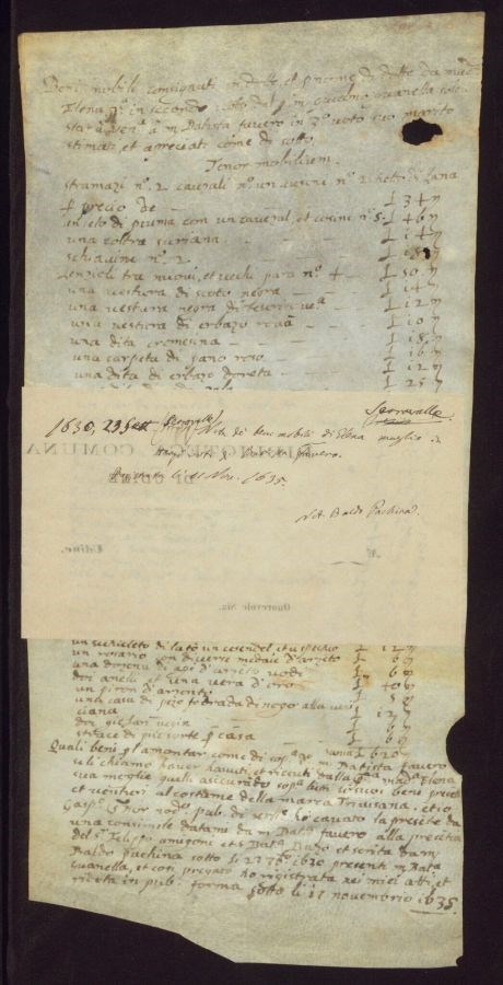Nota de' beni mobili di Elena moglie in terzi voti di Battista Favero Registrato l'11 novembre 1635