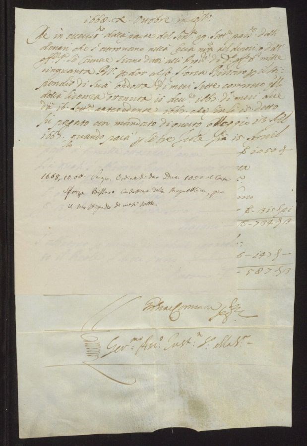 Ordine di dar ducati 1050 al Conte Sforza Billaro Condottiere della Repubblica per il suo stipendio di mesi sette