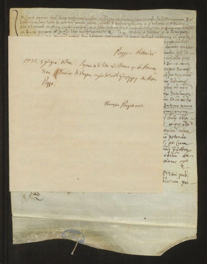 Pagamento di dote ad Adriana quondam Ser Bernardino Tunini di Venzone, moglie del nobile Giuseppe quondam Ser Pietro Pozzo