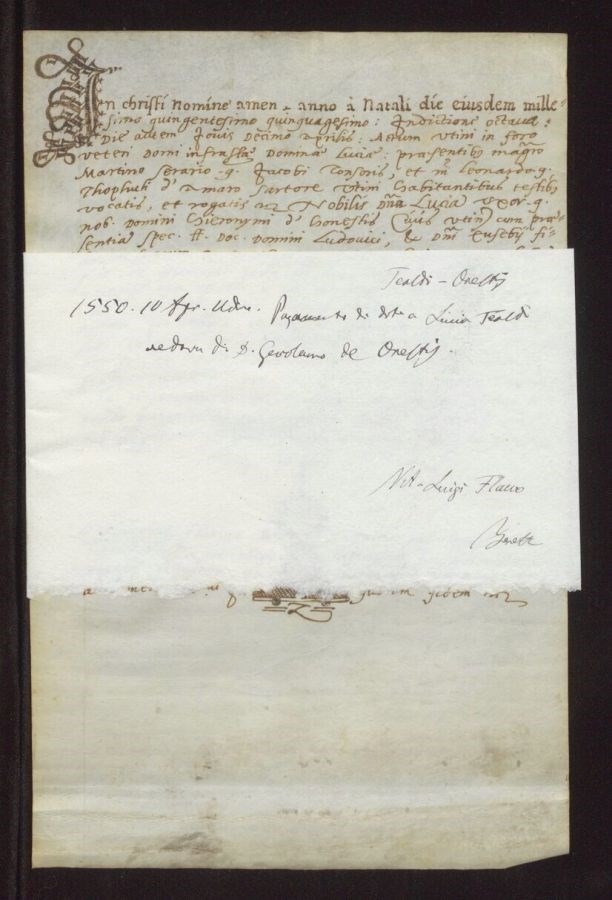 Pagamento di dote a Lucia Tealdi vedova di dominus Gerolamo de Onestis