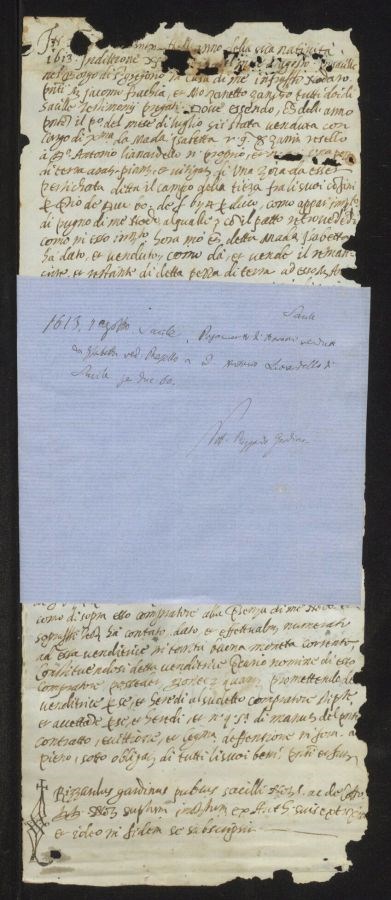 Presenza di piccoli strappi nella parte superiore e sul lato destro
