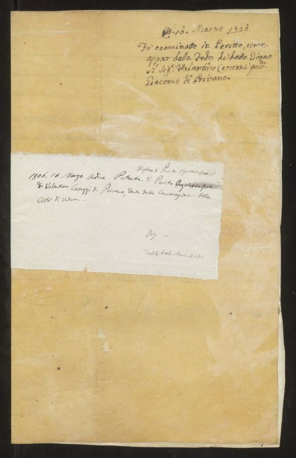 Patente di perito agrimensore di Valentino Caruzzi di Privano, data dalla Convocazione della Città di Udine