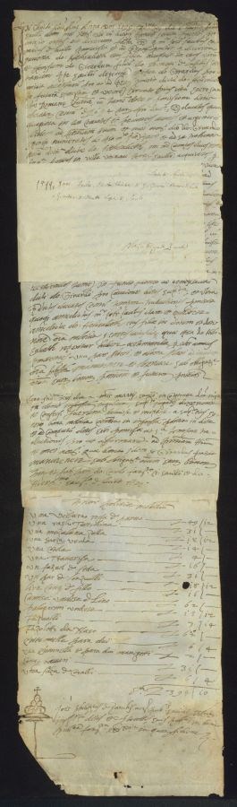 Documento composto da una pergamena cucita con un&39;altra pergamena sul lato più corto