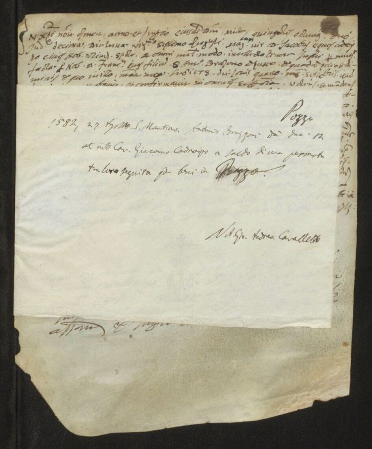 Antonio Brazzoni dà ducati 12 al nobile cavaliere Giacomo Codroipo a saldo di una permuta tra loro seguita per beni in Pozzo