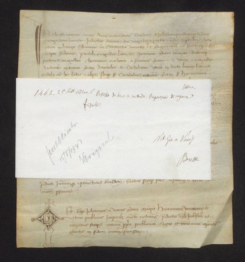 Rigatura a secco del margine dello specchio di scrittura superiore e laterale