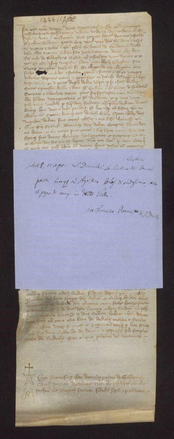 Ser Cicchino di San Daniele presta lire 91 ad Agostino Blas di Sedegliano, verso il pegno di campi in detta Villa