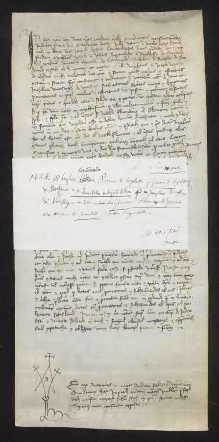 Procura di Angelotto quondam Giacomo di Angelotto di Morsano in ser Zanitello notaio di Udine quondam in Ianzilino Vraisinzer di Vraisinz in lite contro ser Giacomo Flumiano di Gemona che accusava di servitù il detto Angelotto