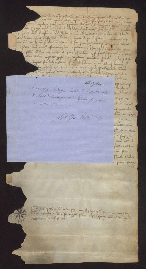 Non sono stati eseguiti interventi di restauro Importanti lacune sul tutto lato sinistro del supporto, che comprendono lo specchio di scrittura