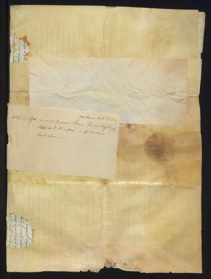Non sono stati eseguiti interventi di restauro Rattoppo in carta moderna di leggera grammatura, lacune che coinvolgono lo specchio di scrittura, strappi