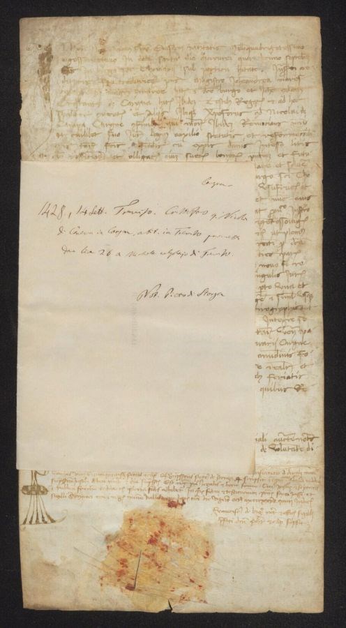 Cristoforo quondam Nicolò di Caneva di Cargna, abitante in Treviso promette dono lire 26 a Michele calzolajo di Treviso