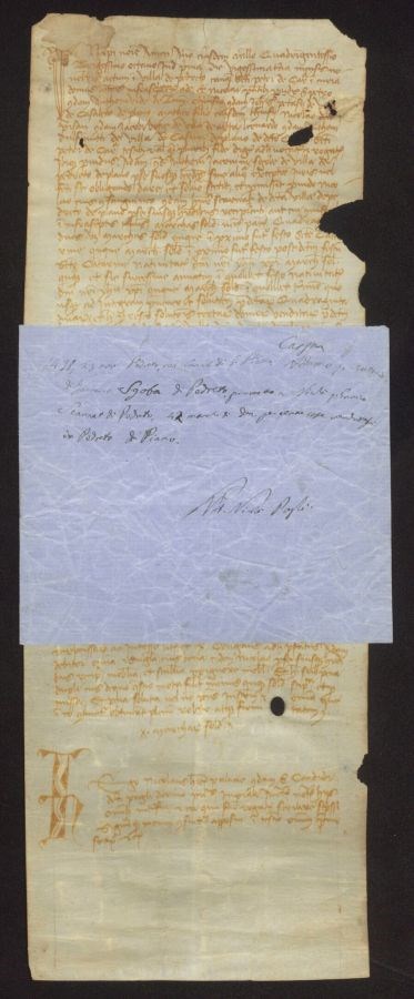 Adamo quondam Antonio di Giacomino Sgoba di Pedreto, promette a Nicolò quondam Enrico Scannat di Pedreto, 42 marche di denari per cento cose vendutigli a Pedreto di Piano