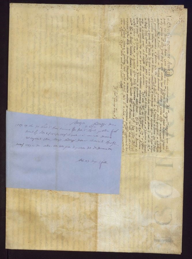 Il regesto 2 si riferisce ad un appunto riportato nel retro della pergamena