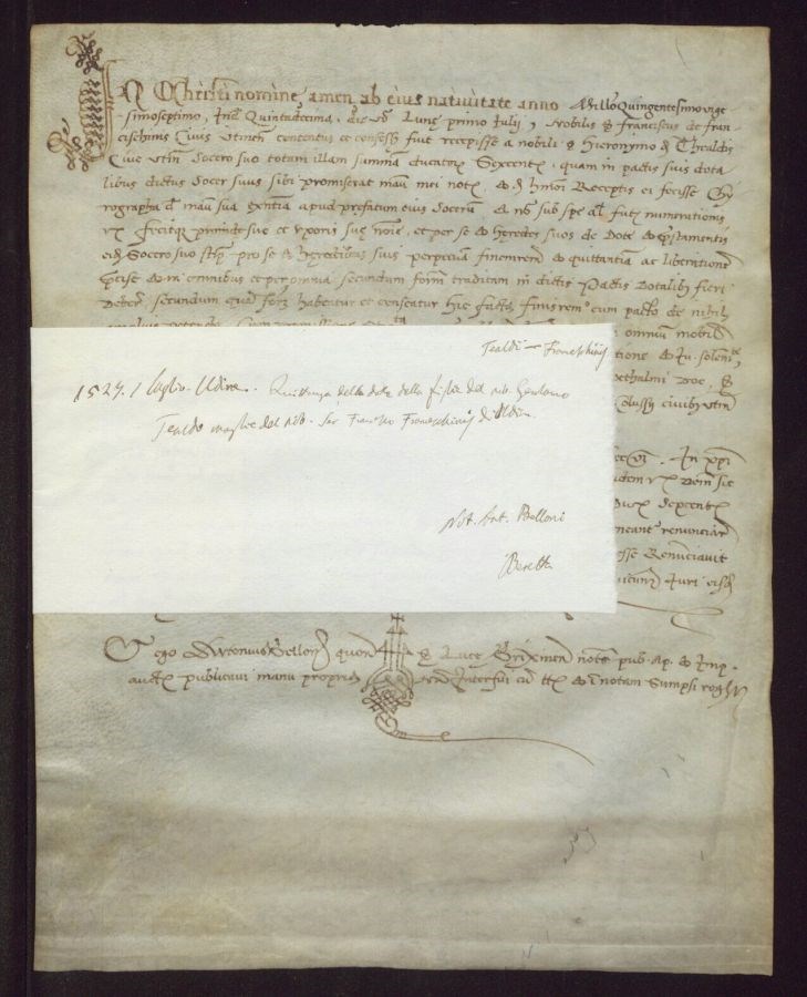 Quittanza della dote della figlia del nobile Gerolamo Tealdi moglie del nobile Ser Francesco Franceschinis di Udine