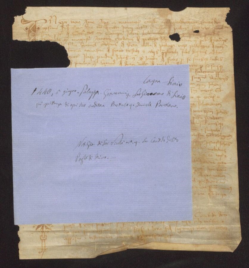 Giovanni quondam Ser Giacomo di Siaio fa quietanza di ogni sua credito a Bertolo quondam Daniele Povolano