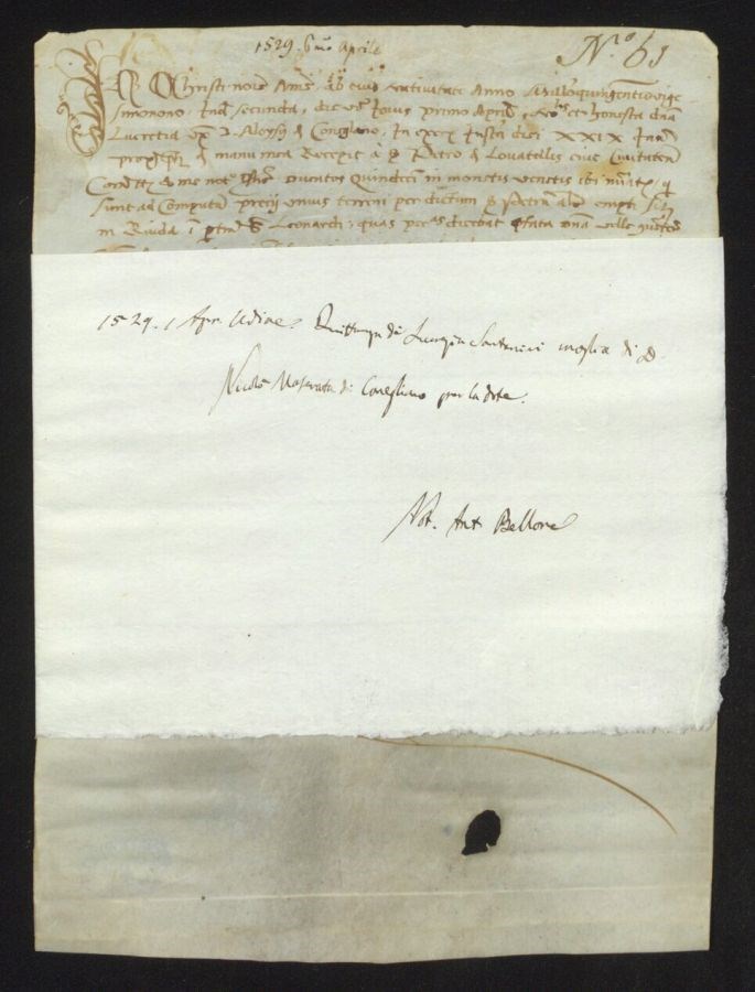 Quittanza di Lucrezia Santonini moglie di Dominus Nicolò Maserata di Conegliano per la dote