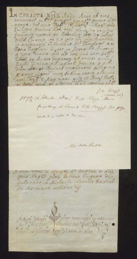Il nobile Filippo Manin fa quittanza al Comune di Villa Chiazzis del pagamento di un debito di ducati 50