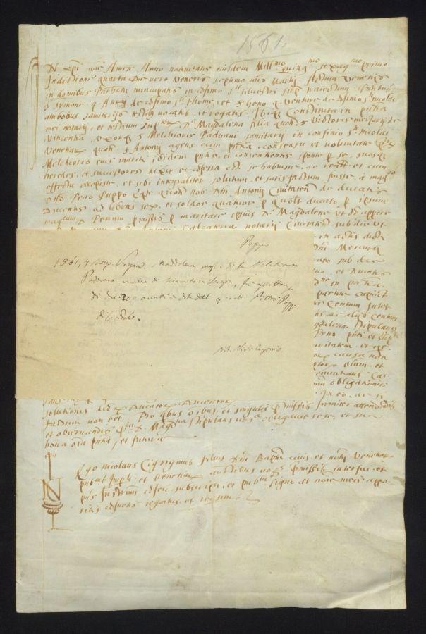 Maddalena moglie di ser Melchiorre Padovano venditore di sciamito in Venezia, fà quittanza di ducati 20 avuti in dote dall'quondam nobile Pietro Puppo di Cividale