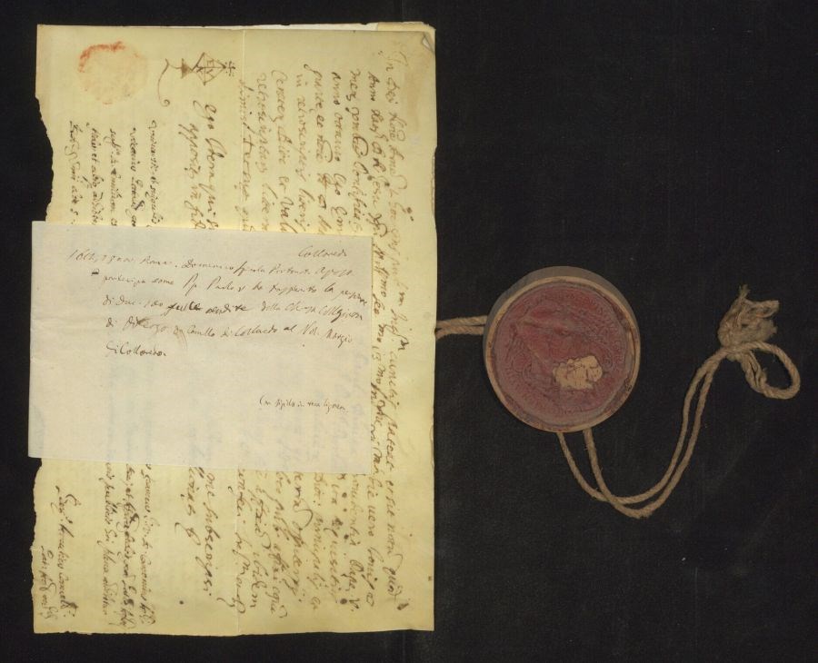 Domenico Spinola protonotaio apostolico partecipa come [Papa] Paolo V ha trasferito la pensione di ducati 100 sulle rendite della chiesa collegiata di Oderzo da Camillo di Colloredo al notaio Marzio di Colloredo