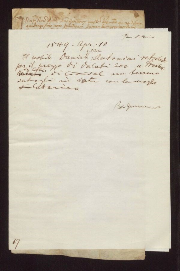 Il nobile Daniele quondam Andrea Antonini retrocede per il prezzo di ducati 200 a Francesco de Cortis di Cividale un terreno datogli in dote con la moglie Cattarina
