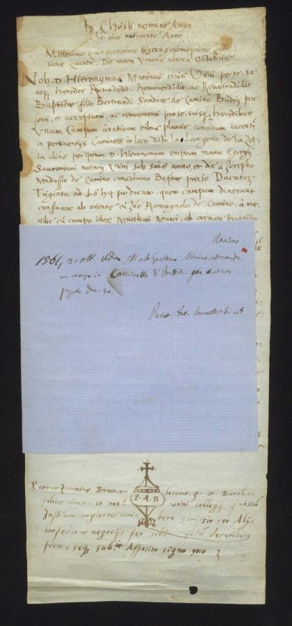 Il nobile Gerolamo Marino retrovende un campo in Caminetto di Butrio che aveva pagato ducati 30
