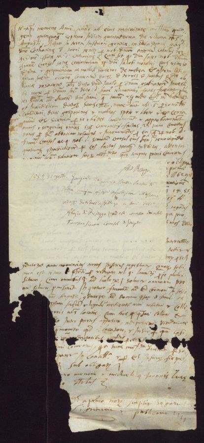 Documento lacunoso e mutilo della parte inferiore