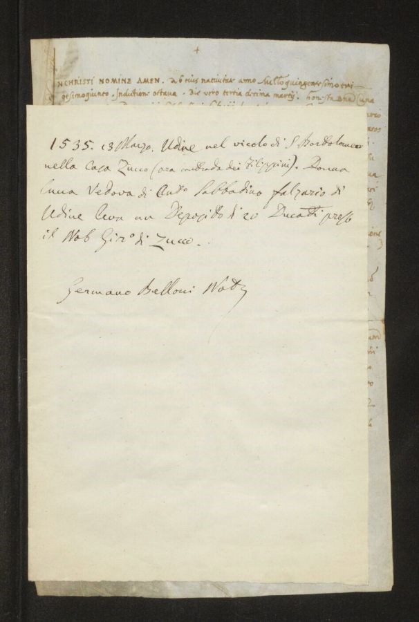 Donna Luna vedova di Antonio Sabbadino falzario di Udine leva un deposito di 20 ducati presso il nobile Girardo di Zucco