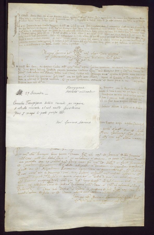 Cornelio Frangipane dottore rivende per ragione di rettratto vicinale al nobile veneto Gerolamo Zeno 5 campi di prato presso Vât [i.e. Vat]