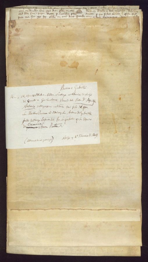 Sentenza arbitraria di Luigi di Cignotti e Giovanni Cavalcanti Vicarii del Patriarca di Aquileia Antonio sulle questioni ereditarie tra i figli del quondam ser Martinus Pavona ed Odorico quondam ser Antonio di Gabrieli (sulle dalle) sostanze lasciate dal fu ser Gabriele quondam ser Odorico di Cremona e Donna Perta