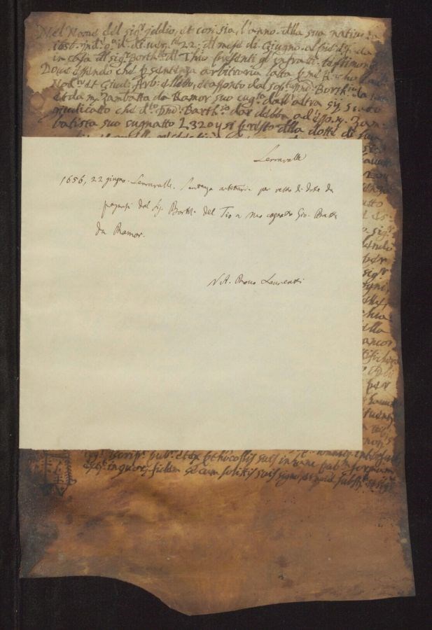 Sentenza arbitraria per resto di dote da pagarsi dal Signor Bortolomio del Tio a suo cognato Gio Batta da Ramor
