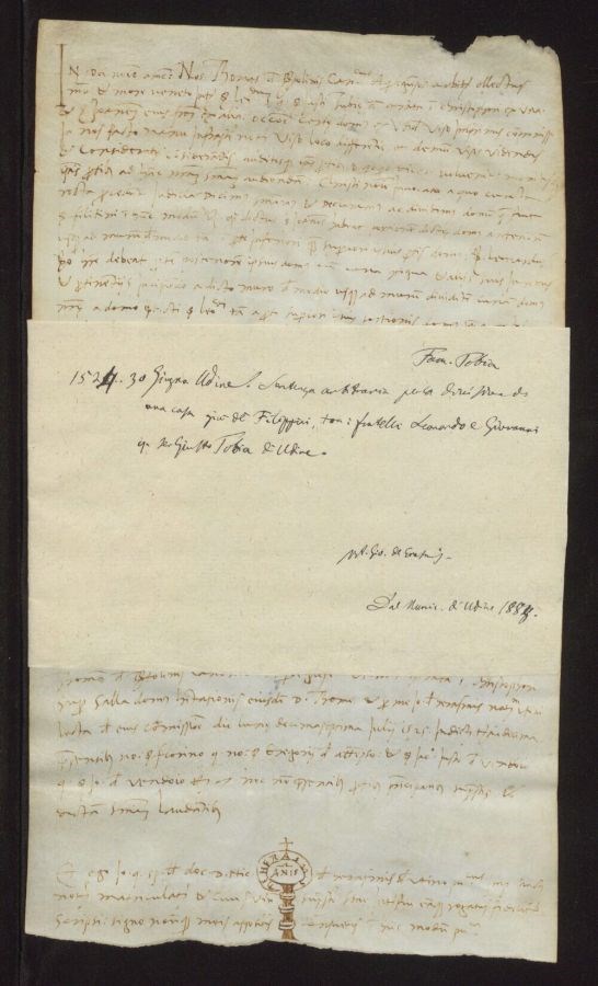 Sentenza arbitraria per la divisione di una casa già de' Filippini, tra i fratelli Leonardo e Giovanni quondam ser Giusto Tobia di Udine