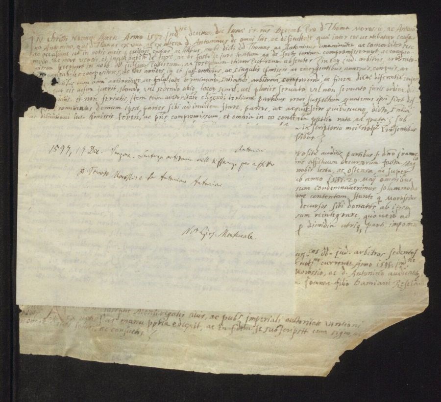 Sentenza arbitraria nelle differenze per affitti dominus Tomaso Morssio e Antonino Antonini