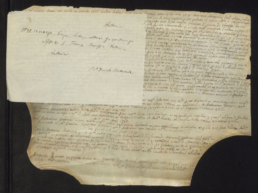 Sentenza arbitraria su questioni per affitti tra dominus Tomaso Morossi e Antonino Antonini