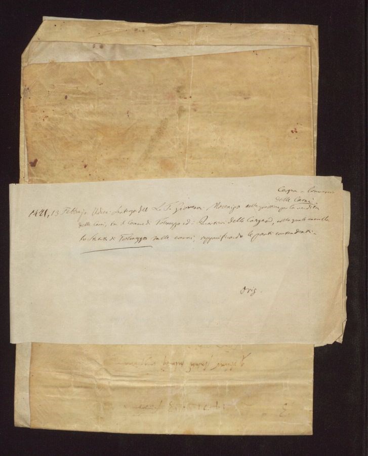 Sentenza del Luogotenente Giovanni Mocenigo nella questione per la vendita delle carni, tra il Comune di Tolmezzo ed i Quartieri della Cargna, colla quale annulla lo Statuto di Tolmezzo sulle carni, rappacificando le parti contendenti