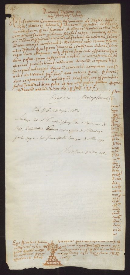 Sentenza del Luogotenente nelle differenze tra i comuni di Tesis, Basaldella e Vivaro contro quello di Maniago per la segatura del fieno nella Comugna di Maniago