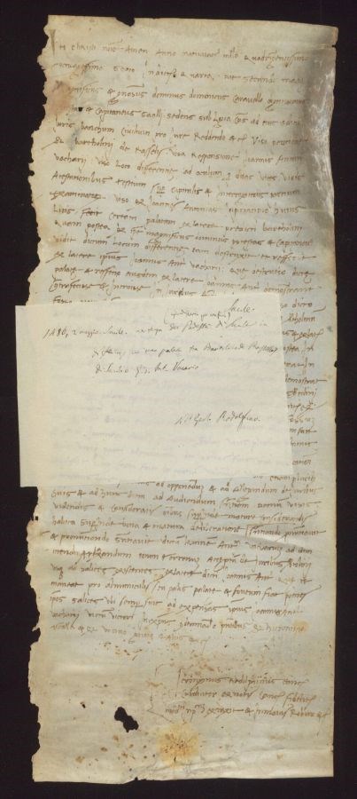 Sentenza del Podestà di Sacile in differenze su una palata tra Bartolino Rassellis di Sacile e Giovanni Antonio Vicario. Giudiziaria per confini